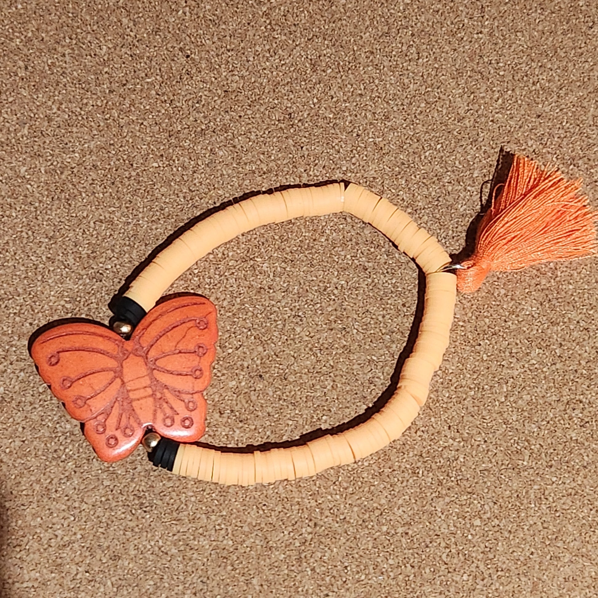 The butterfly is made of a lightweight stone, with the matching clay beads and tassel.