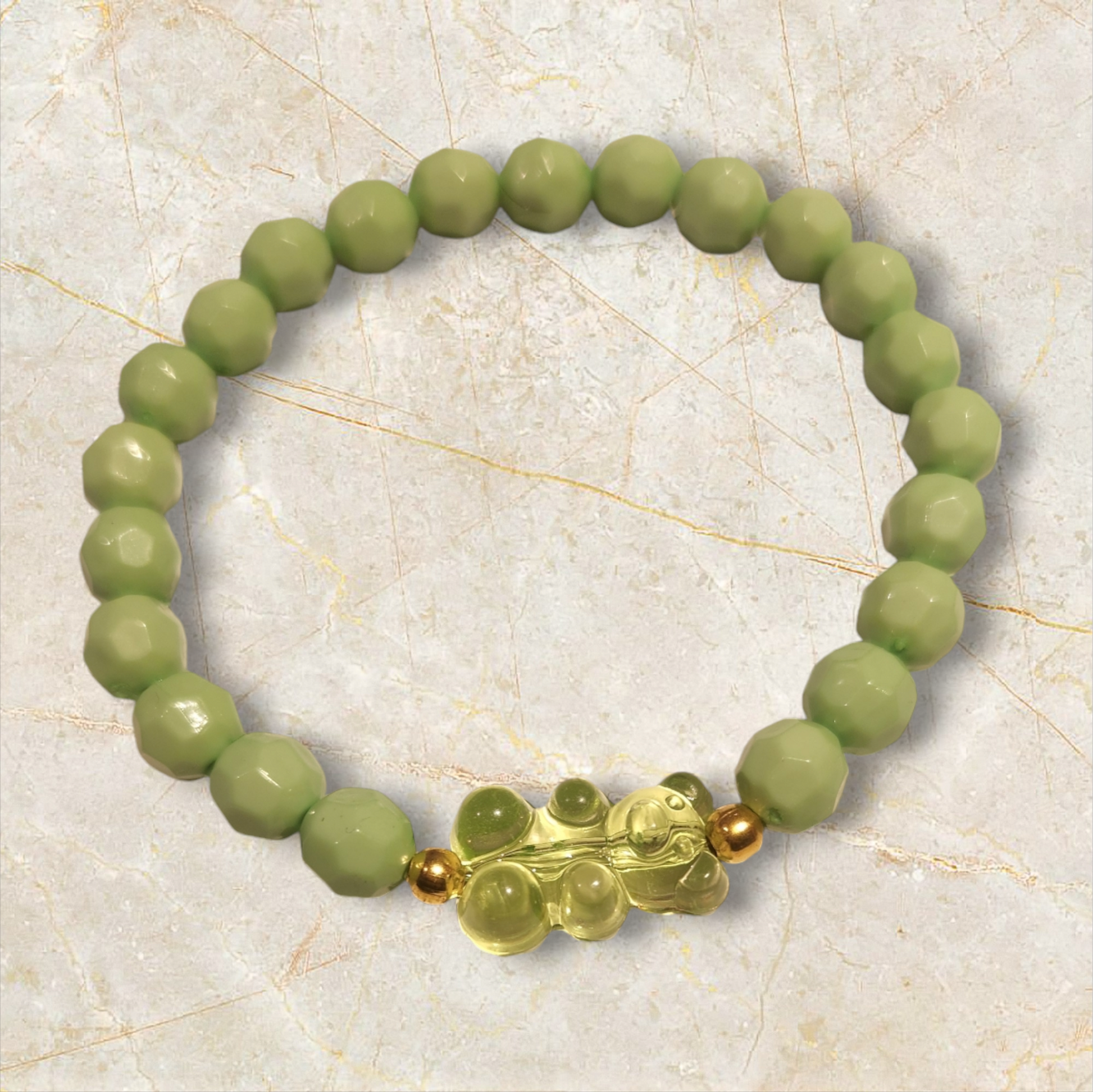 The cutest bracelets are here! These gummy bear bracelets are bright, colorful, and made with translucent bears and matching beads and are made to order.