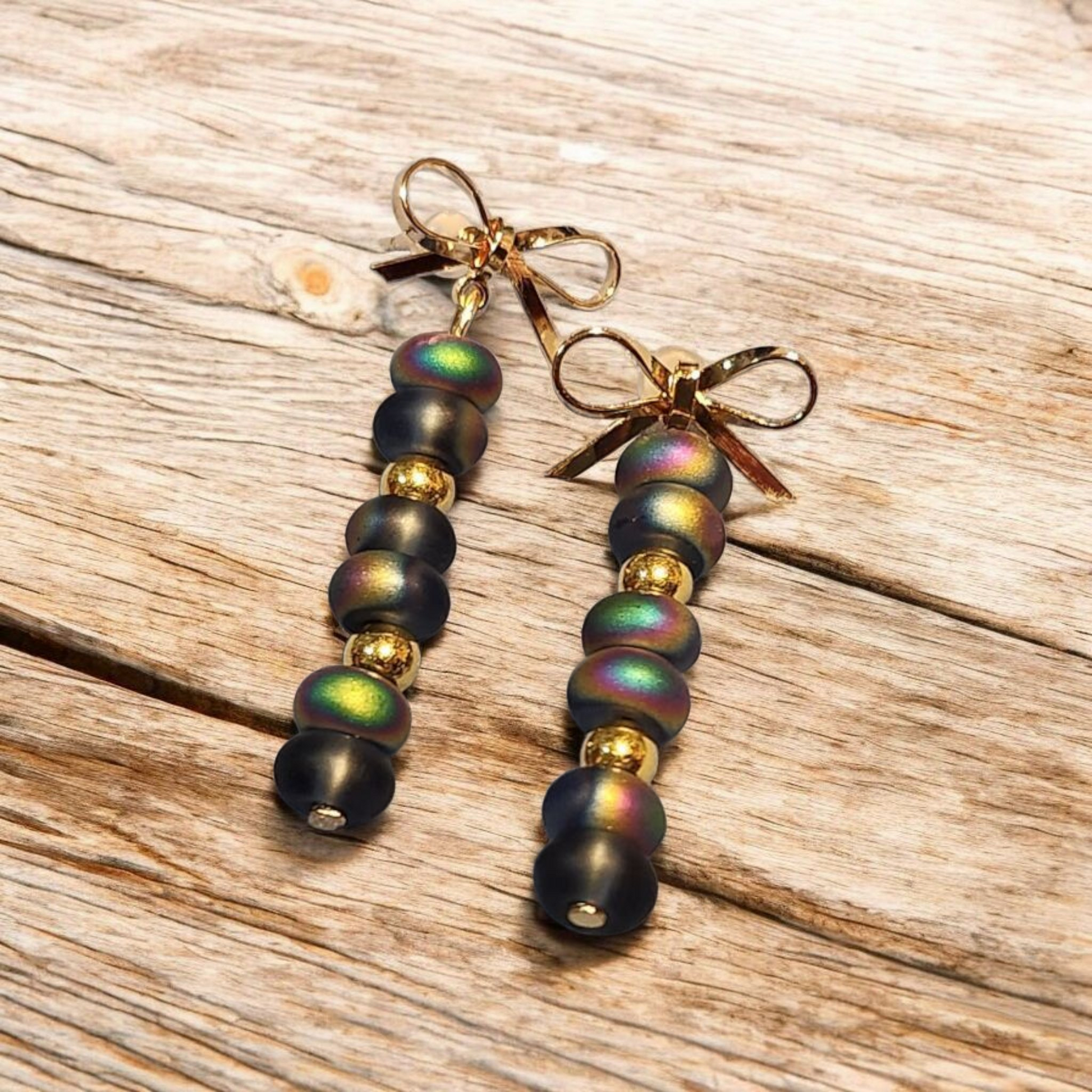 Iridescent Bead Dangle Earrings