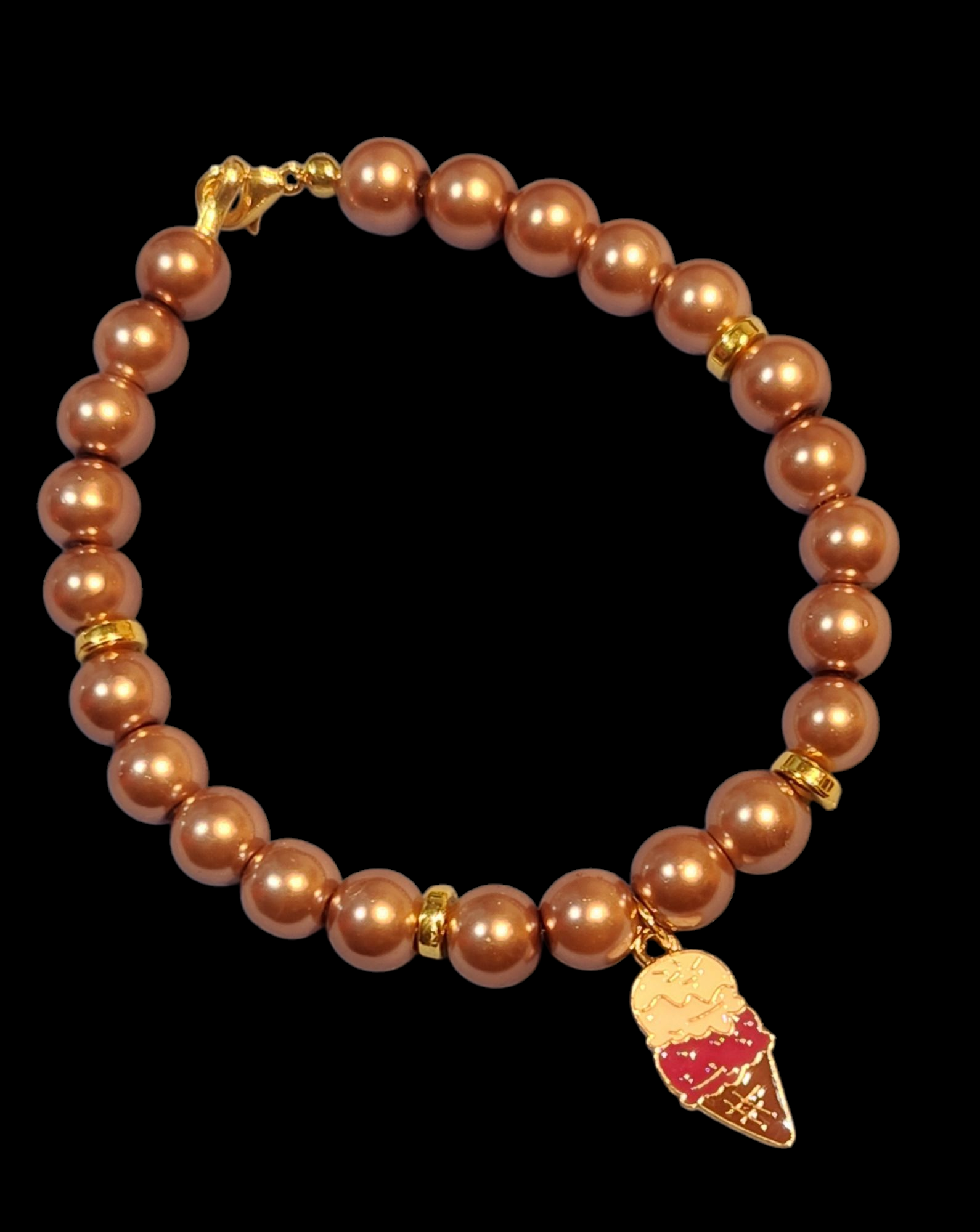 This bracelet is from my ice cream collection. It is made using round pearl glass beads in mocha brown with a matching ice cream cone charm.