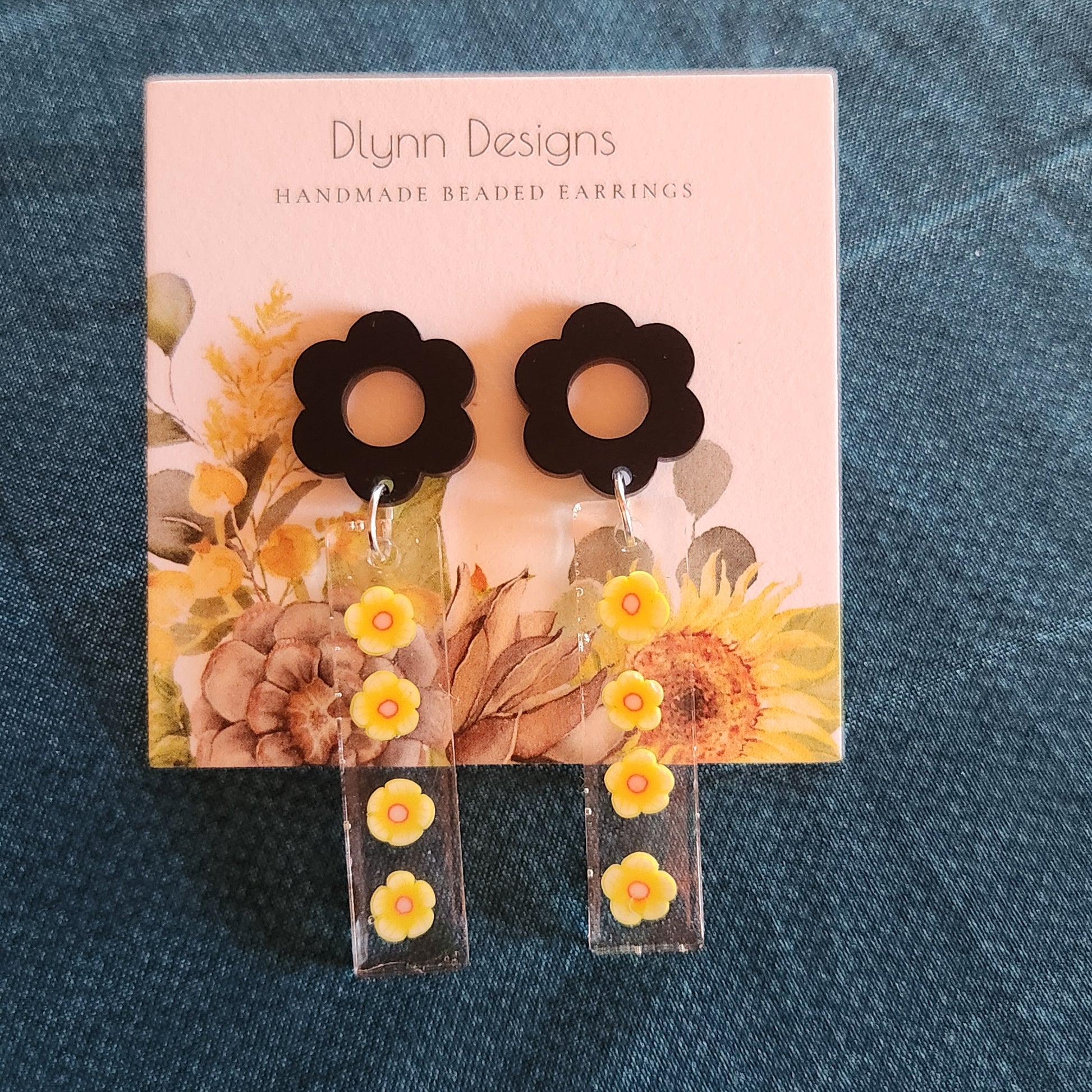 Black and Yellow Floral Dangle Earrings